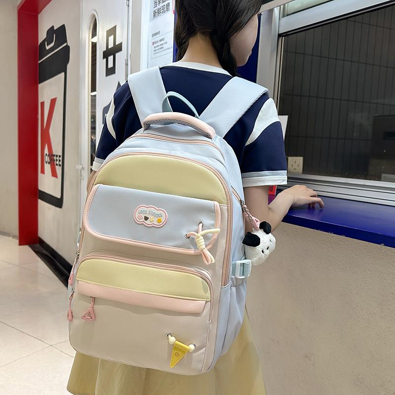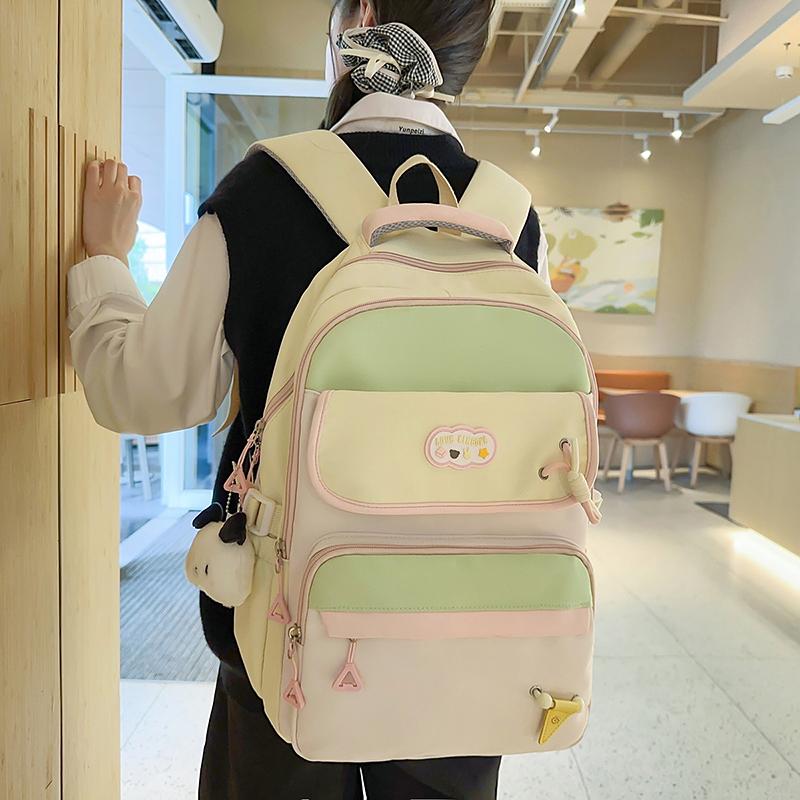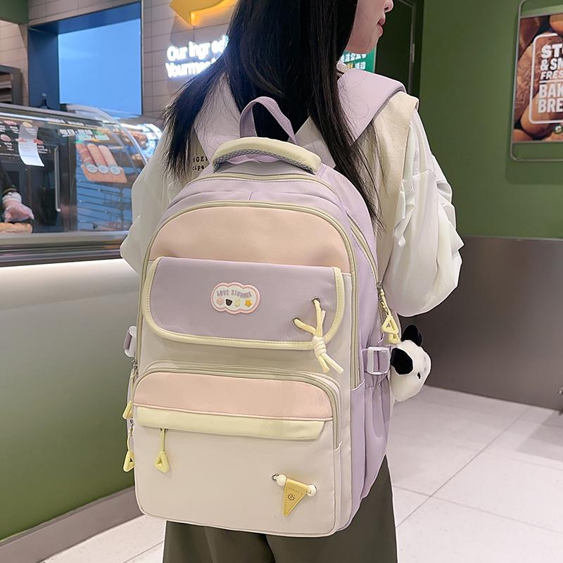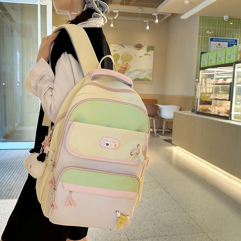 Студенческий школьный рюкзак большой вместимости, цветной блок, женский рюкзак