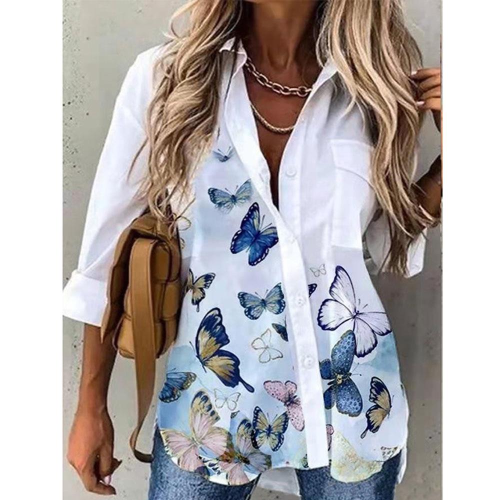 Модная новая женская одежда рубашка с длинным рукавом с цифровой печатью женская рубашка топ