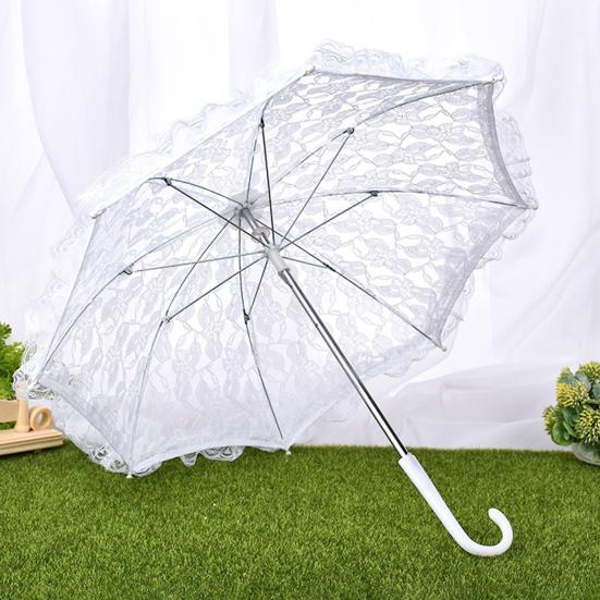 Элегантный кружевной дизайн: Подчеркните свой стиль с помощью этого кружевного зонтика с замысловатыми кружевными украшениями, которые добавят нотку изысканности любому наряду.. Идеально подходит для свадеб, чаепитий и официальных мероприятий, легко дополняя различные стили одежды.