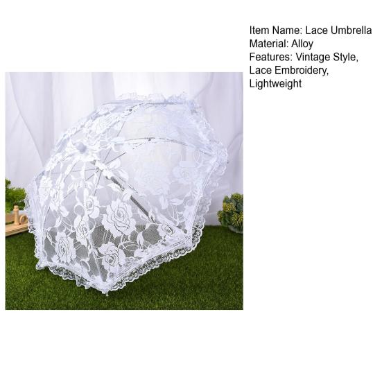 Просторная зона укрытия: Наслаждайтесь обширной защитой под этим кружевным зонтом, сохраняя при этом компактность и портативность конструкции.. Элегантно защитите себя от солнечных лучей и порывов ветра, что делает его идеальным аксессуаром для мероприятий на открытом воздухе, выступлений или повседневного использования.