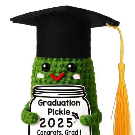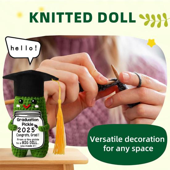 Crochet Graduation Pickle with Tassels Positive Card Handmade Knitting 2025 Graduates Cucumber Doll Stress Relief Toy Desktop Decoration Ornament