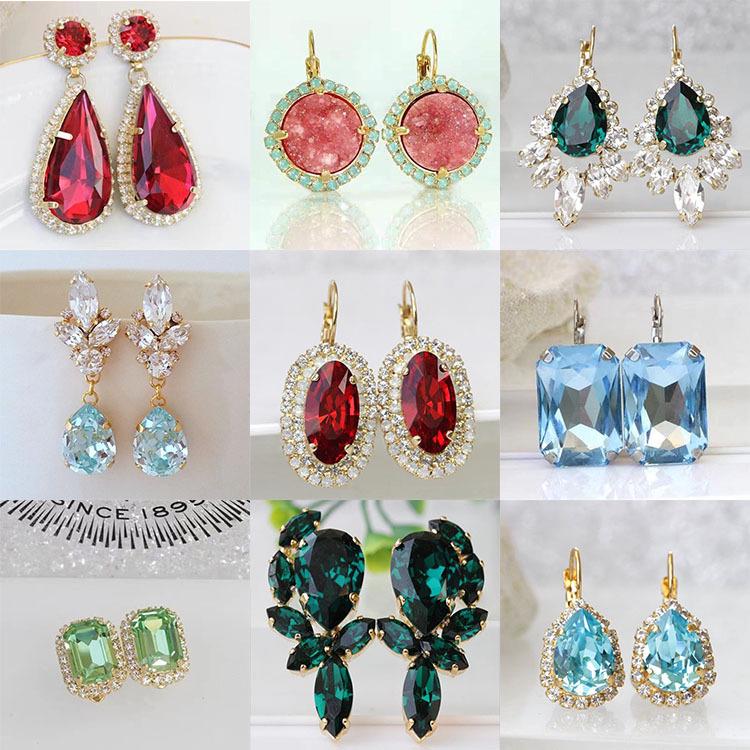 Серьги-пусеты Wei Ya с цветными драгоценными камнями, медные с бриллиантами для женщин — купить товар онлайн с бесплатной доставкой по всему миру!