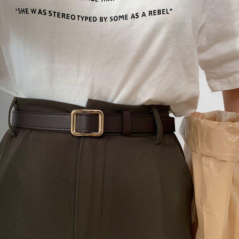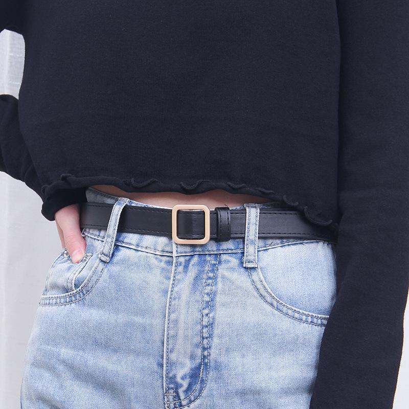 Женский ретро черный кожаный ремень в корейском стиле с квадратной пряжкой