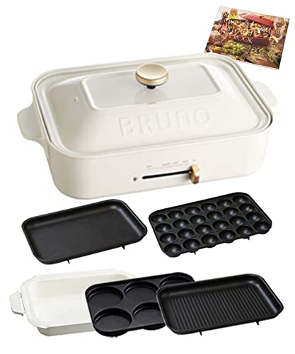 [Книга рецептов] bruno konpakutohottopure-to + Сковороды с керамическим покрытием + Жарочная пластина + Набор из 4 мультитарелок (белый)