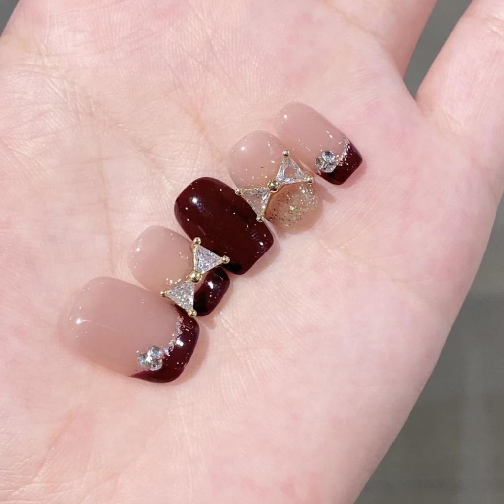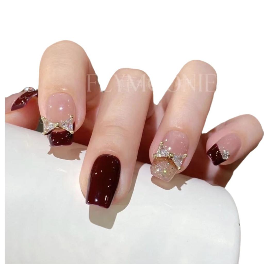 Чистый ручной работы фототерапевтический маникюр бордово-красный носить готовые ногти кошачий глаз наклейка для ногтей демонстрирующая белизну