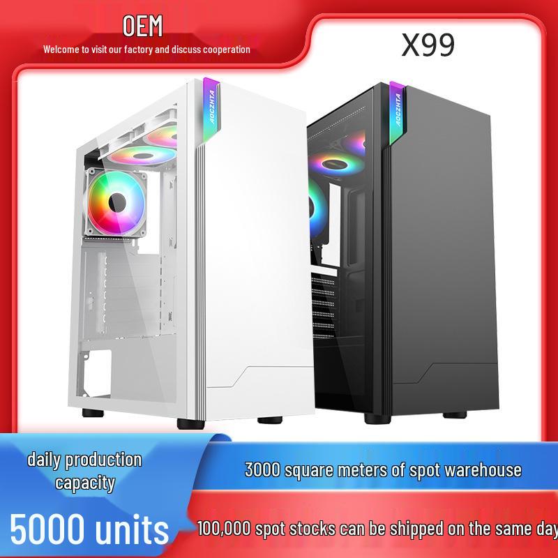 X99 Игровой настольный корпус для киберспорта с панелью из закаленного стекла и красочной подсветкой
