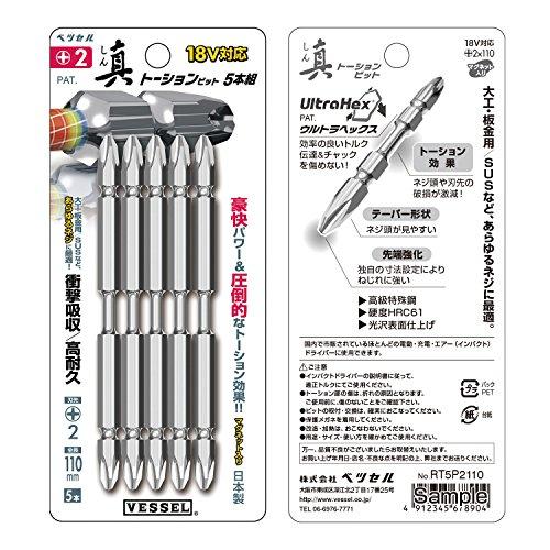 VESSEL RT5P2110 Настоящая торсионная бита, 0,08 x 4,3 дюйма (2 x 110 мм), Набор из 5