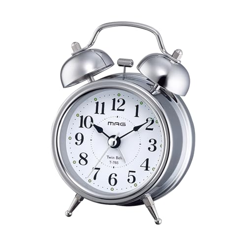 Будильник MAG T-765S-Z, Громкий звук, Аналоговый, Колокольчики Мини DX, Бесшумный, Секундная стрелка непрерывного хода, Функция повтора сигнала, Подсветка, Серебристый