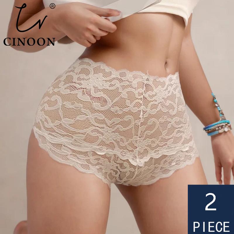 CINOON 2 шт./лот Новые трусики Женское кружевное нижнее белье Сексуальные трусы с высокой посадкой Вышивка Стринги Нижнее белье Однотонное Прозрачное Женское белье