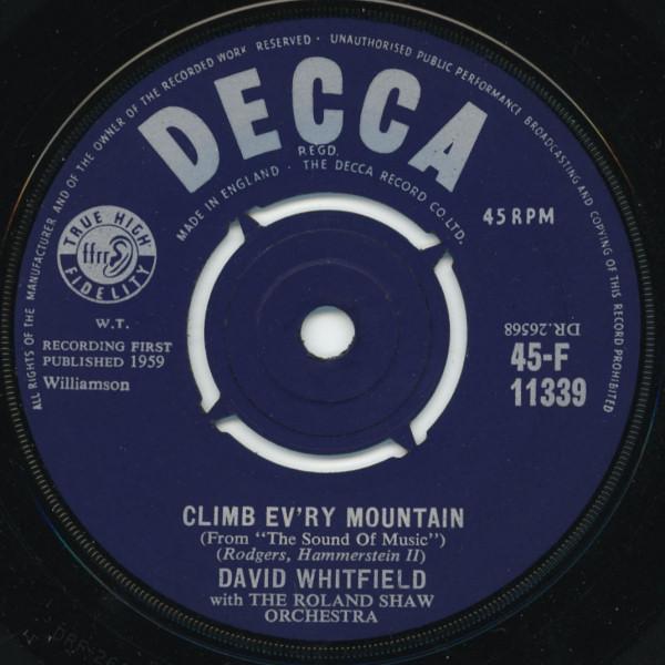 7inch Record DAVID WHITFIELD - Climb Ev'ry Mountain 45F11339 Decca 1959 UK Pop Used