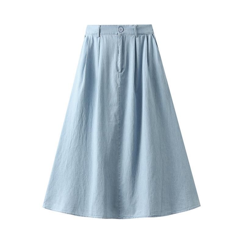 Корейская Длинная Юбка Женская Мода Высокая Талия Ретро Миди А-силуэт Джинсовые Юбки Синяя Солнце Школа — купить товар онлайн с бесплатной доставкой по всему миру!