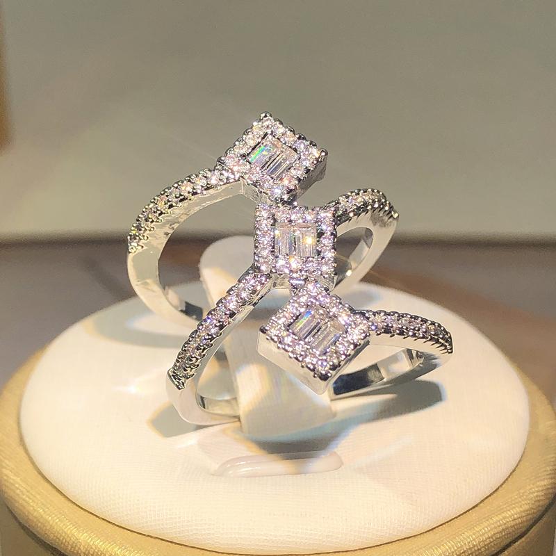 Серебряные Роскошные Кольца с Кубическим Цирконием для Женщин, Обручальные, Свадебные Ювелирные Изделия, Аксессуары с CZ, Кольца на Весь Палец — купить товар онлайн с бесплатной доставкой по всему миру!