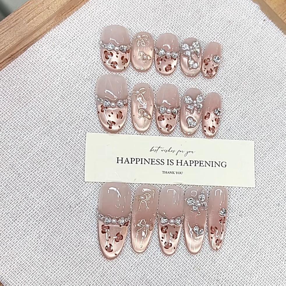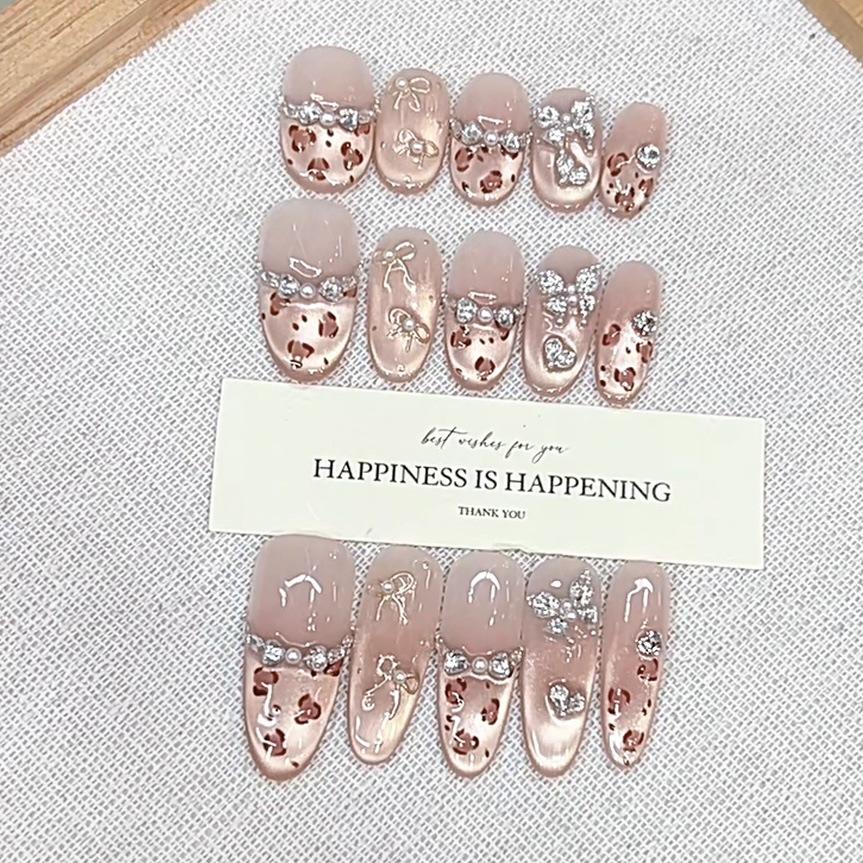Накладной узор на ногтях с рисунком кошачьего глаза в виде леопардового овечьего глаза, выполненный вручную в стиле аргентинского лета