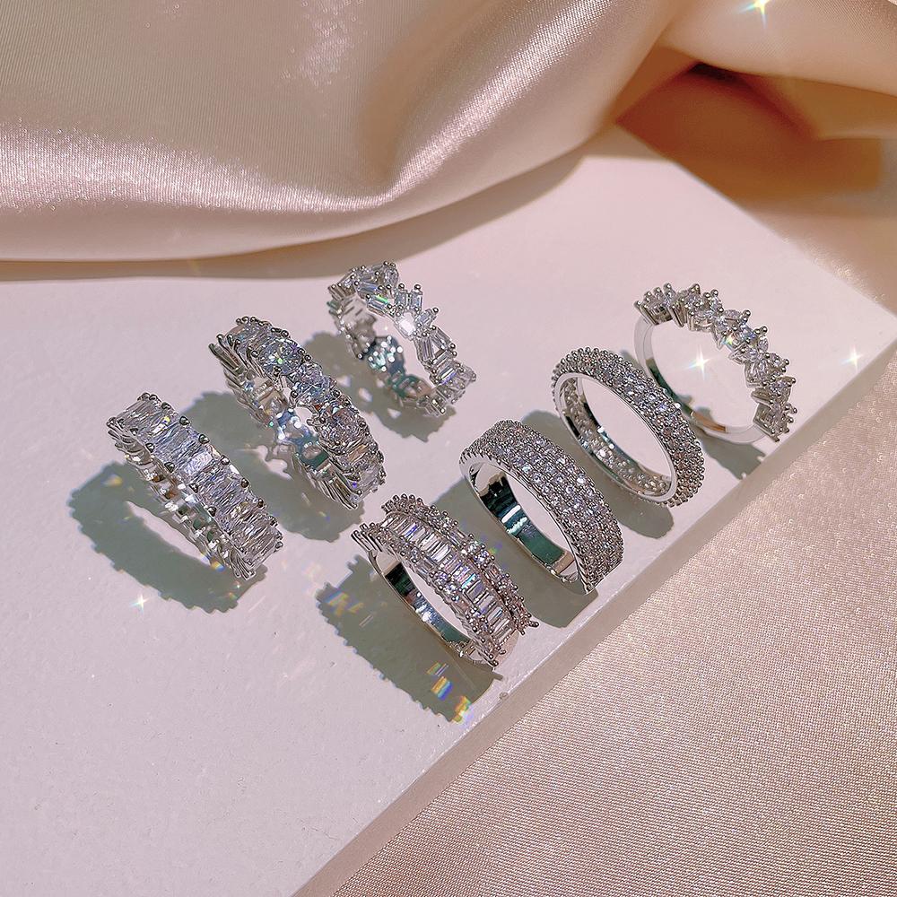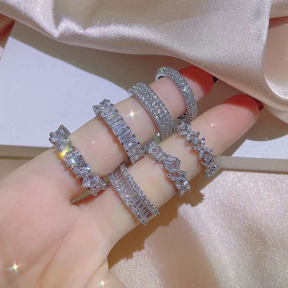 Женское серебряное кольцо Распродажа Кольцо с блестящим цирконом AAAA Разной формы Простое кольцо Кольцо Изящный стиль Красоты Обручальное кольцо