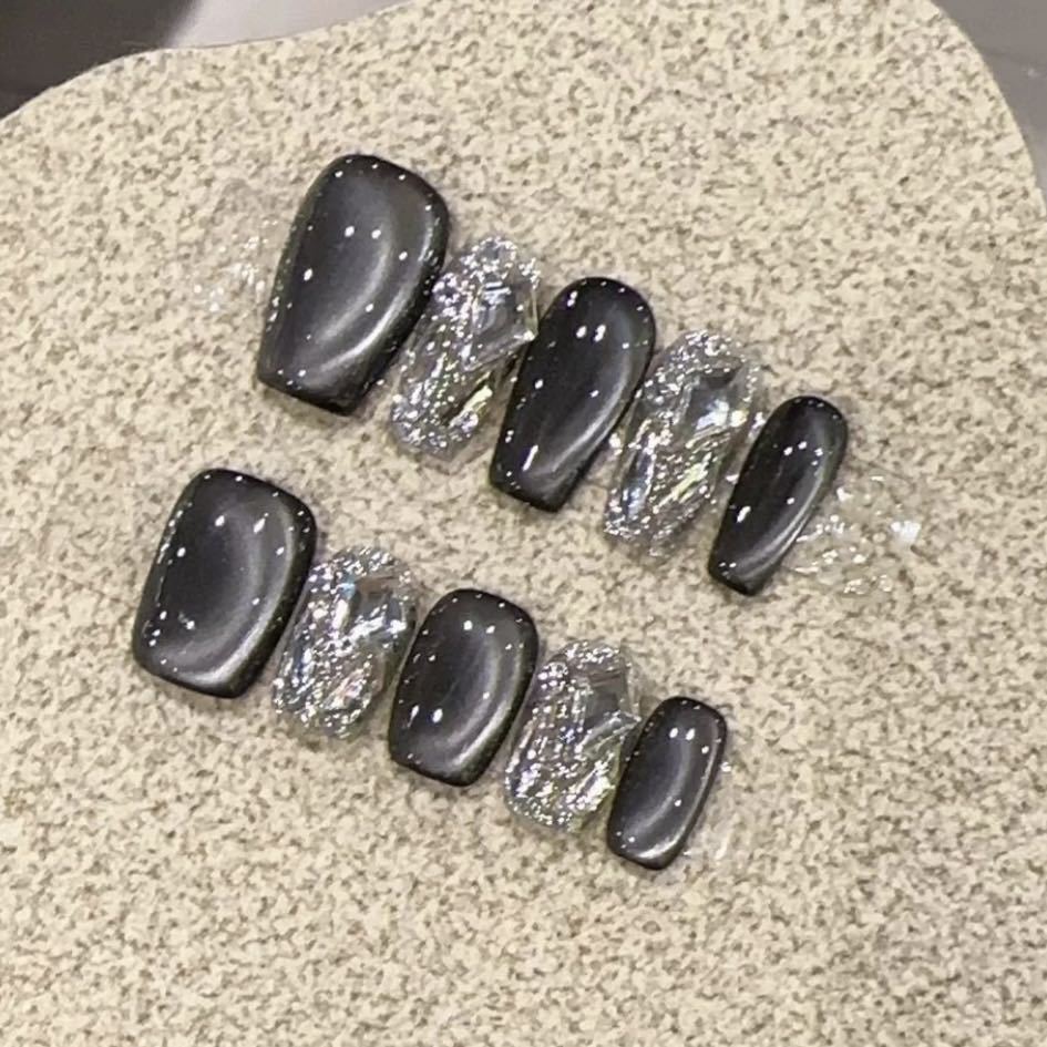 Чистый ручной работы фототерапевтический маникюр черный юмористический носимый готовый ноготь кошачий глаз накладка на ноготь, демонстрирующая белизну