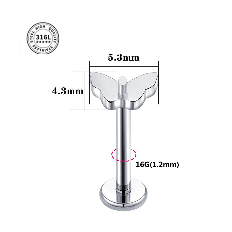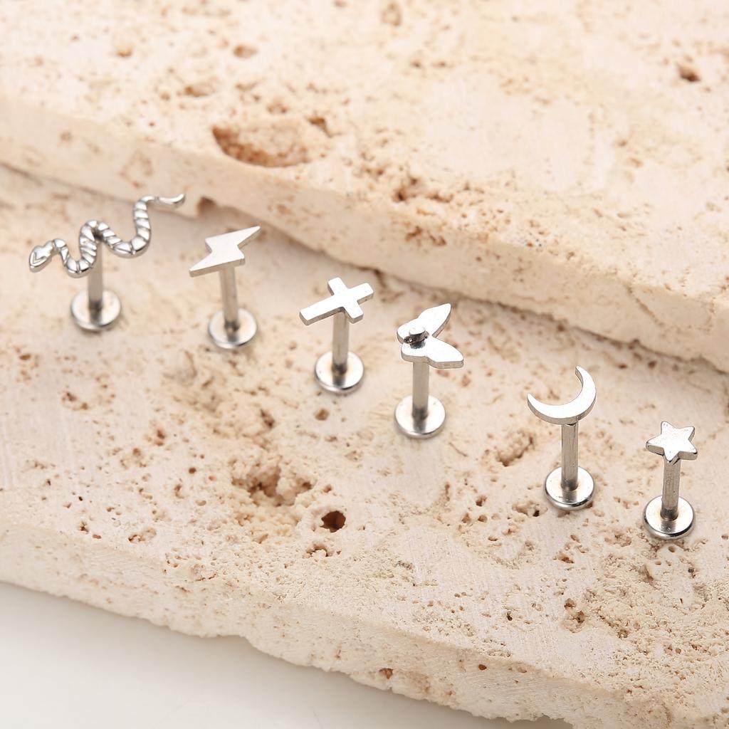 16G Плоские маленькие серьги-гвоздики с внутренней резьбой для пирсинга хряща козелка ушной раковины для женщин