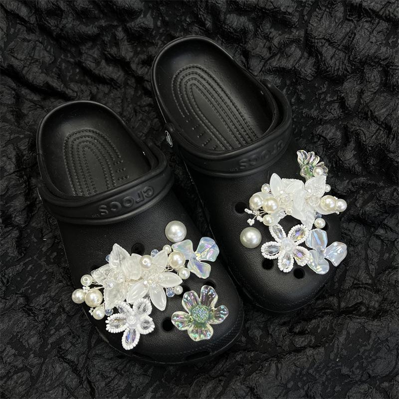 Аксессуары для обуви Crocs, Пряжки для обуви DIY, Цветы для обуви, Жемчужные стразы, Серебристые украшения, Аксессуары для обуви, Женские, Аксессуары для обуви