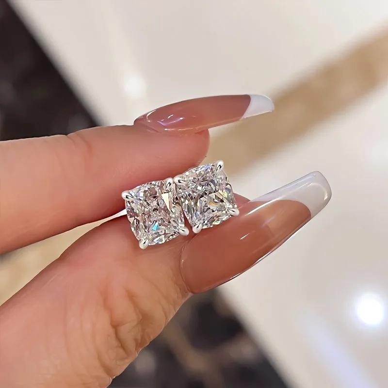 Huitan Серьги-пусеты с кристаллами кубического циркония для женщин, серебристого цвета, простые стильные аксессуары, модные универсальные серьги, ювелирные изделия