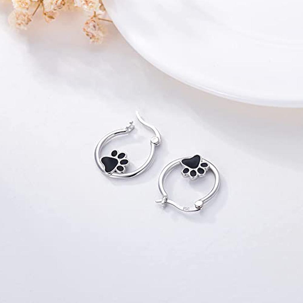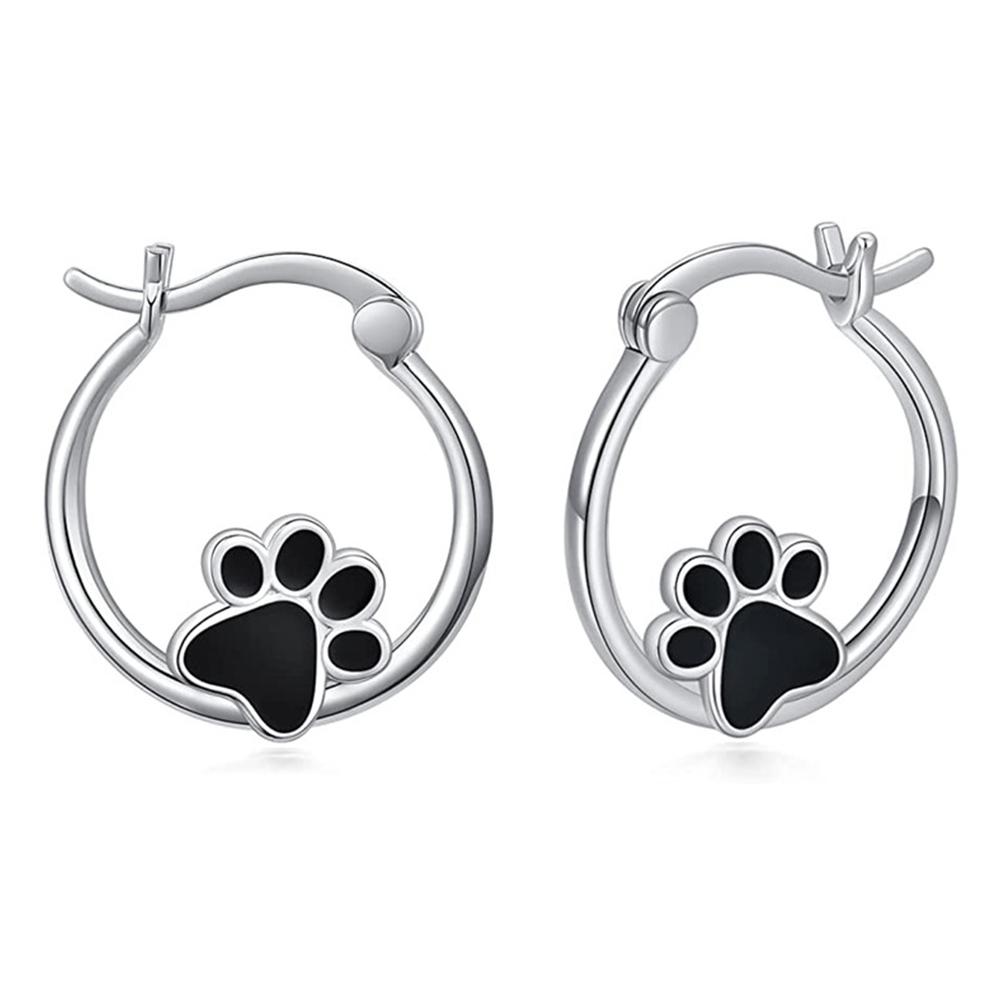 Серьги-кольца Huitan Cute Black Footprint Design для женщин, модные серьги с эмалью, подарок на день рождения, ювелирные изделия, прямая поставка