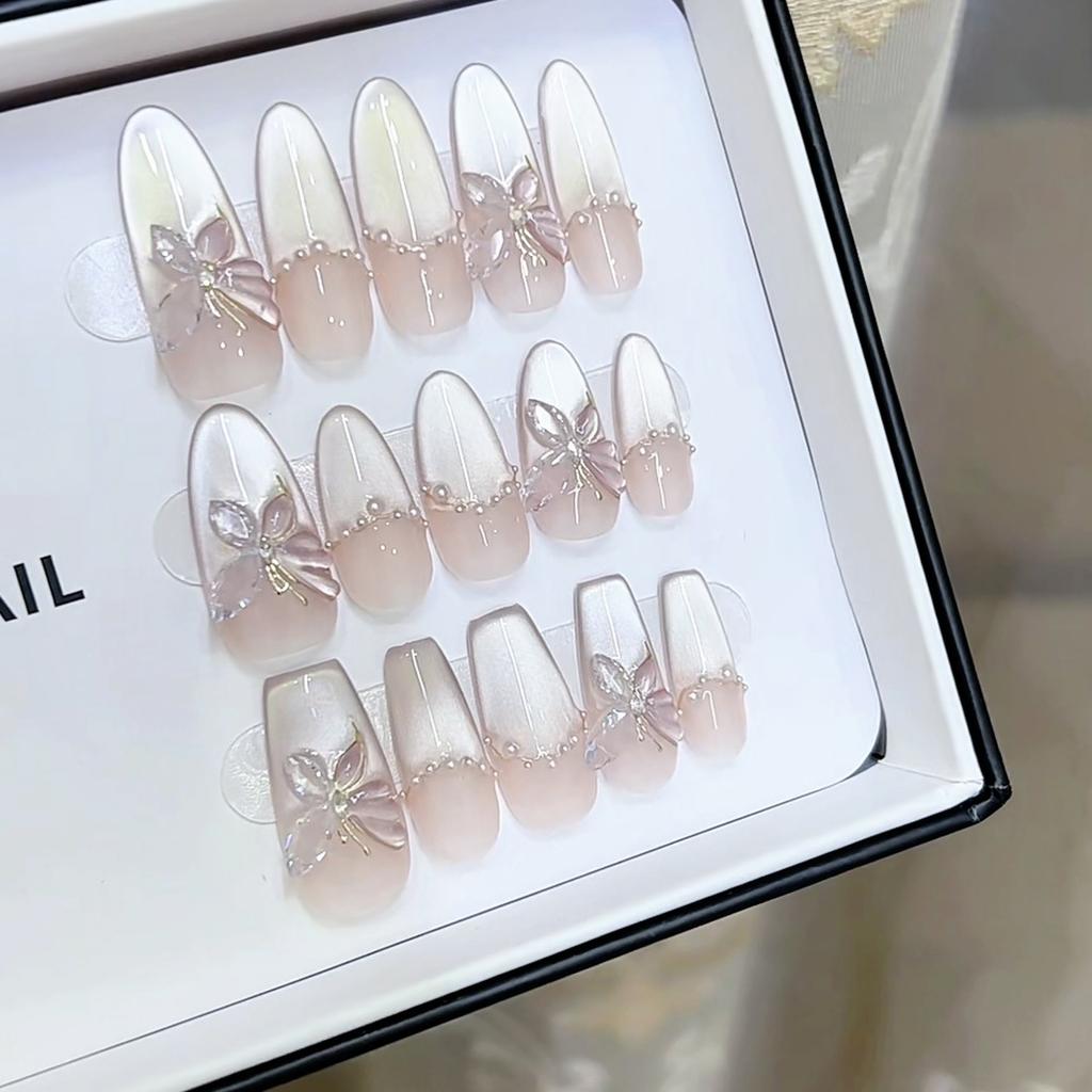 Чистый ручной работы фототерапевтический нейл-арт двойная бабочка носить броню готовые накладки для нейл-арта кошачий глаз показать белизну и темперамент