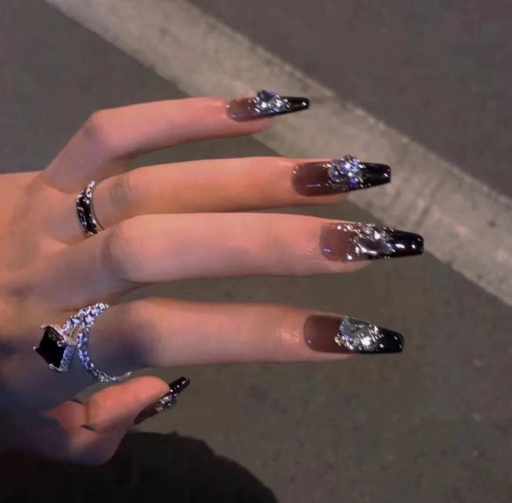 Чисто ручная работа Фототерапия Носимые Накладные Ногти Крутой Черный Носимые Ногти Горячей Девушки Готовый Продукт Многоразовые Наклейки для Ногтей