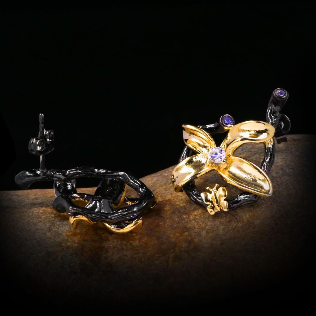 Серьги с высоким чувством роскоши, супер яркий фиолетовый циркон, золотой бант, серьги-сетка красного цвета, двухцветные черно-золотые серьги для женщин