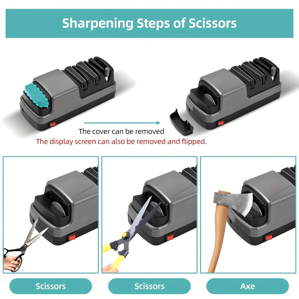 Многофункциональный инструмент точилка для ножей 4-в-1: Подходит для алмачной наждачной бумаги для прямых лезвий, зубчатых кромок, керамических деталей и ножниц.
