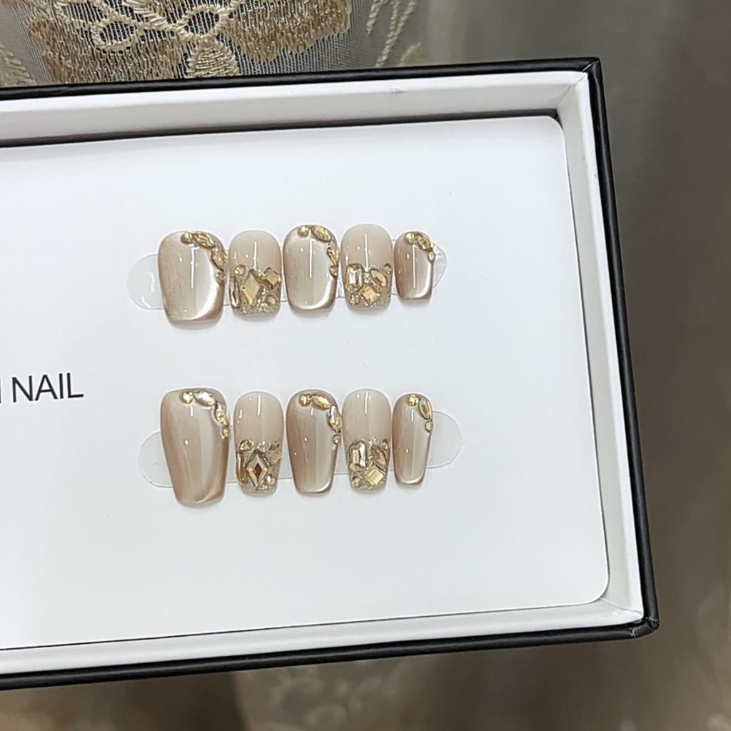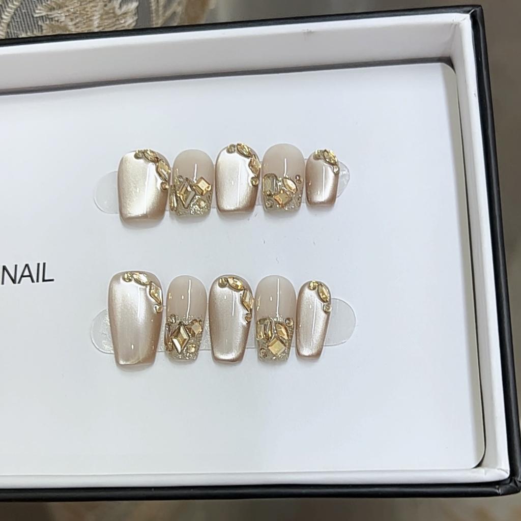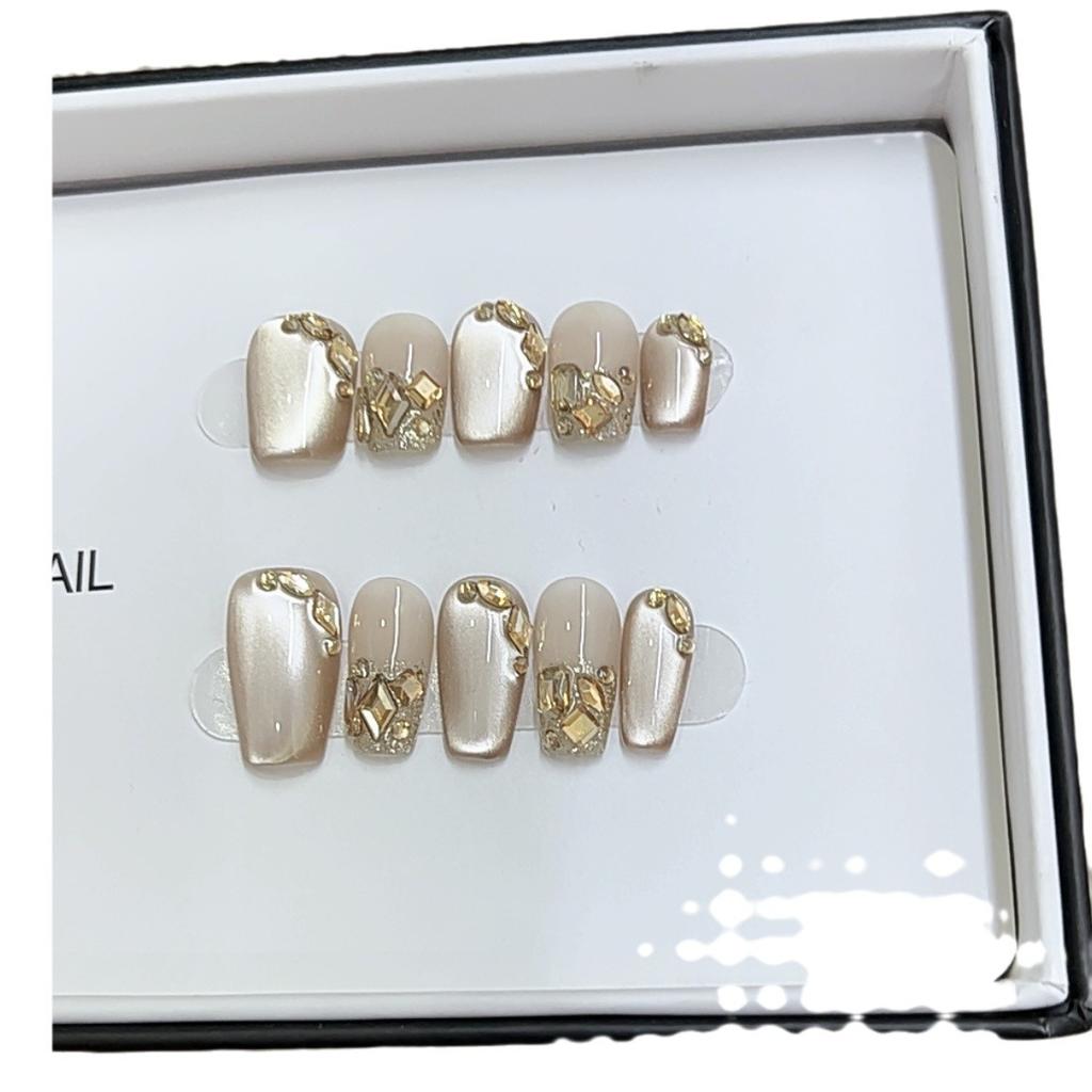 Чисто ручная работа Фототерапия Носимые накладные ногти Корица Молочный Кофе Носимые накладные ногти Готовое изделие Многоразовый нейл-арт