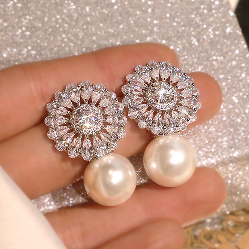 Элегантные свадебные серьги Huitan, роскошные кубические циркониевые серьги с имитацией жемчуга класса ААА, романтические женские модные серьги-гвоздики для вечеринок