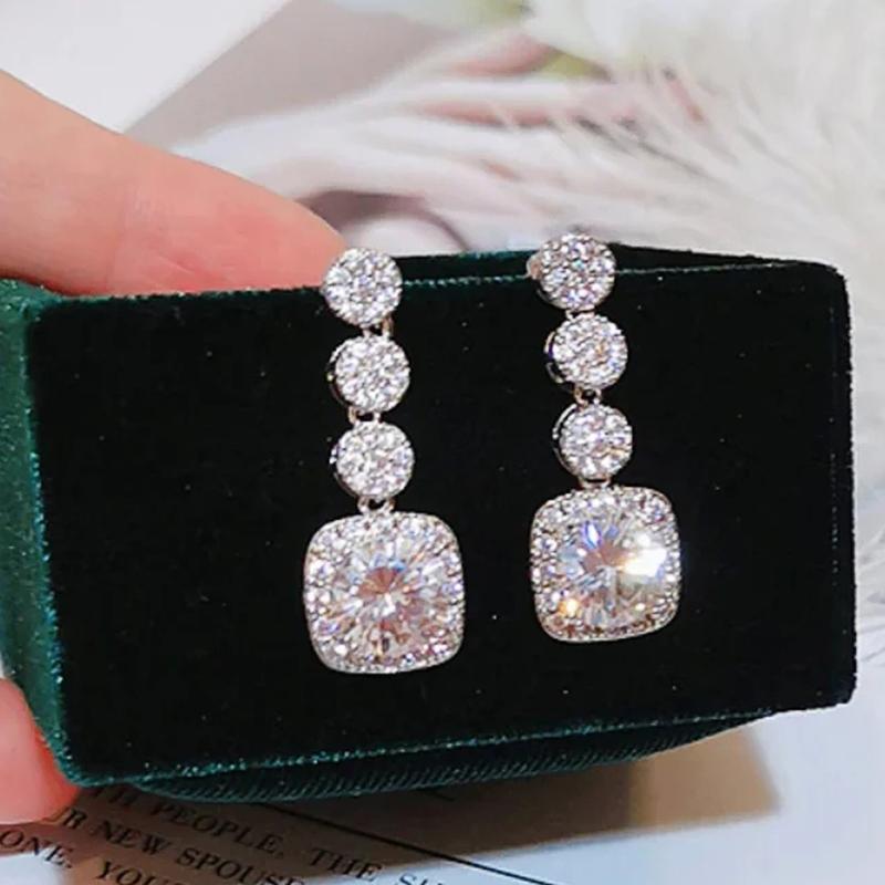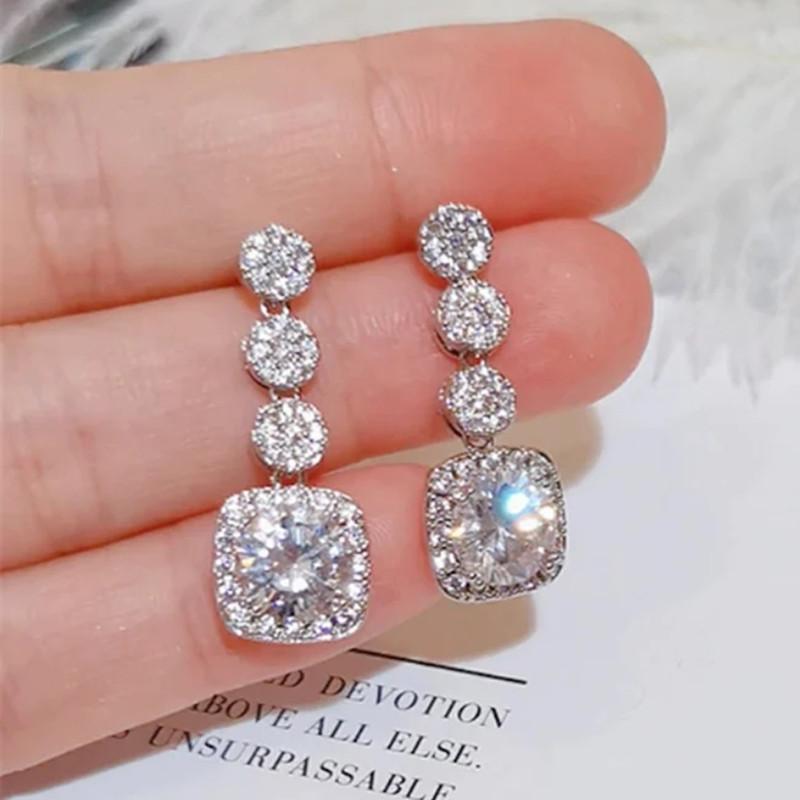Huitan Сверкающие женские серьги-подвески с кубическим цирконием ААА, серебристого цвета, изысканные женские аксессуары, свадебная модная бижутерия