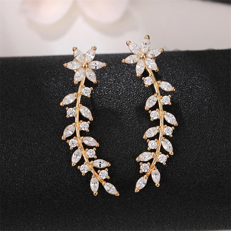 Серьги-гвоздики Huitan Aesthetic Flower, серьги-гвоздики Climb Ear, изысканные женские аксессуары для ушей с ослепительными фианитами, новые модные украшения