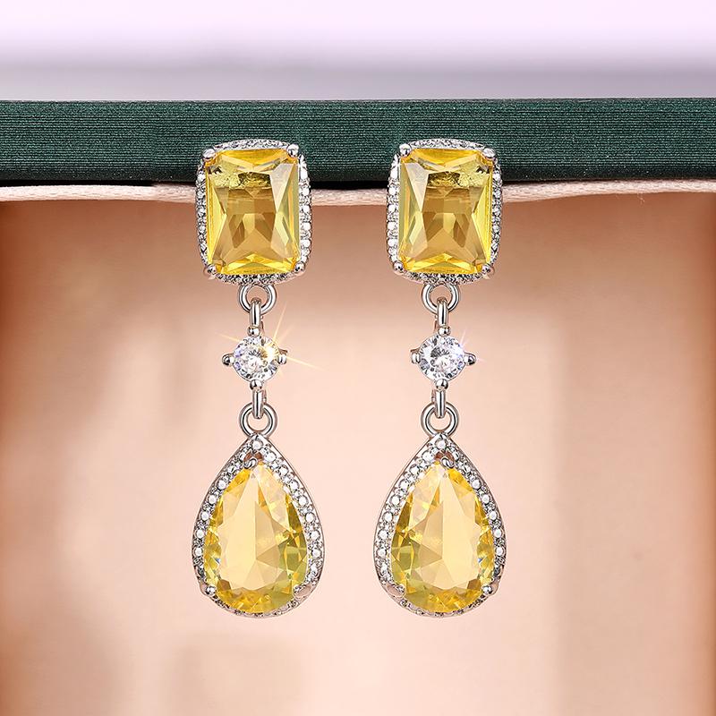 Серьги-подвески Huitan Fresh Pink/Yellow Circonia для женщин, темпераментные, элегантные, женские, помолвочные, свадебные, ювелирные изделия
