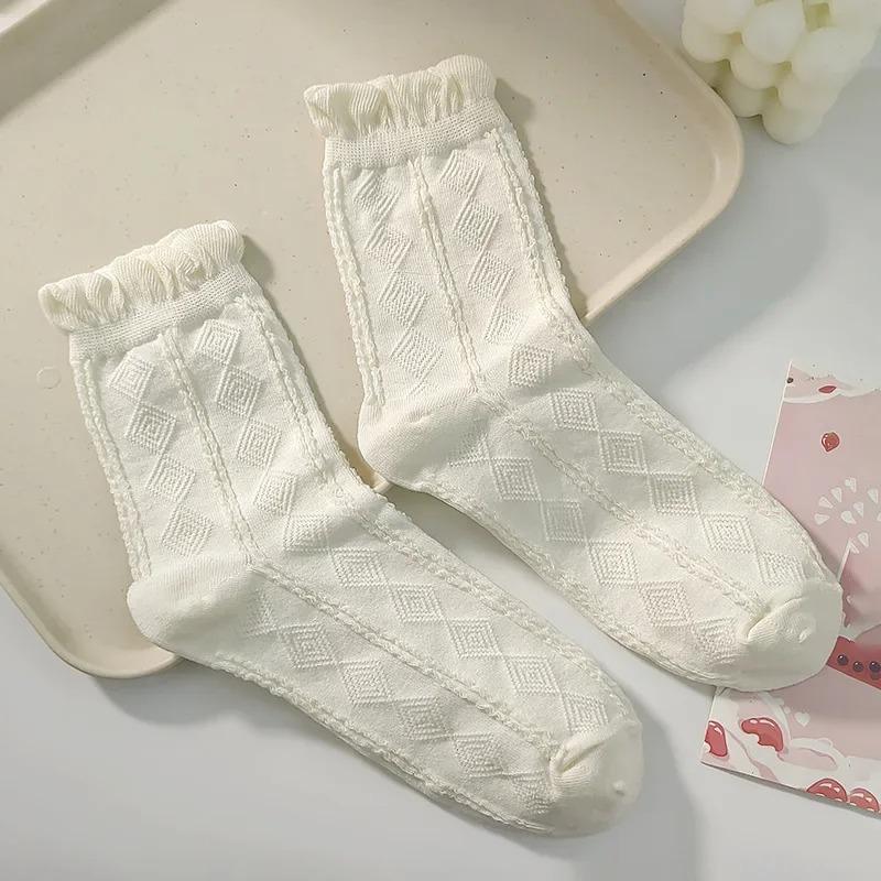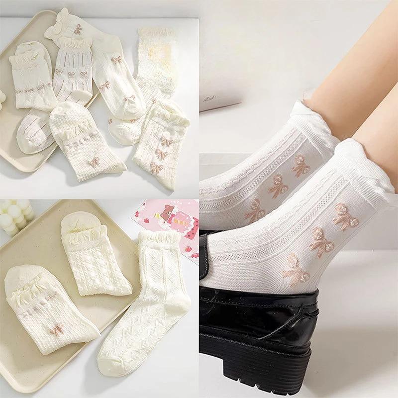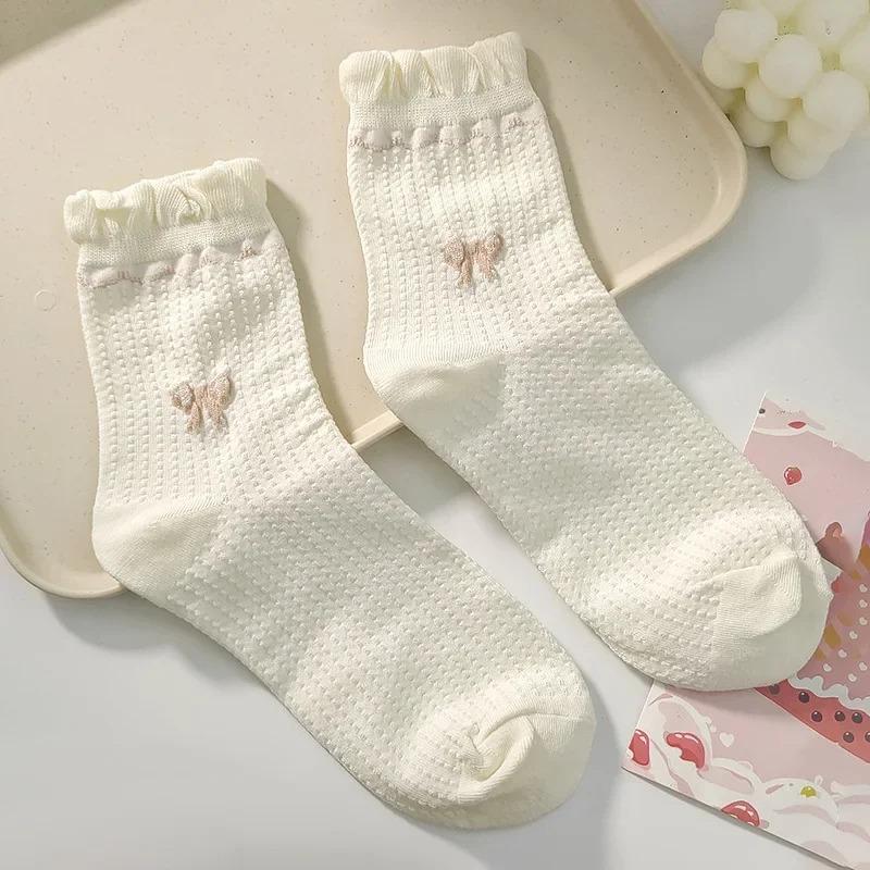 Простые белые носки Универсальные Прекрасный бантик Маленькие цветочки Женские носки средней длины каваи Харадзюку jk Лолита Девушки Хлопок