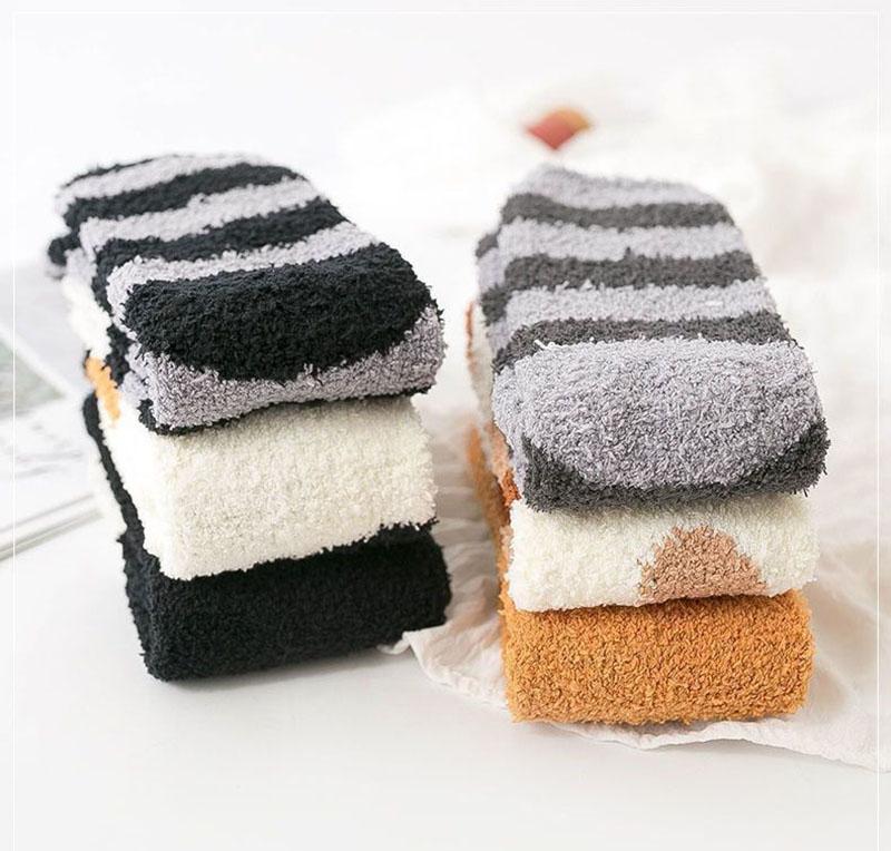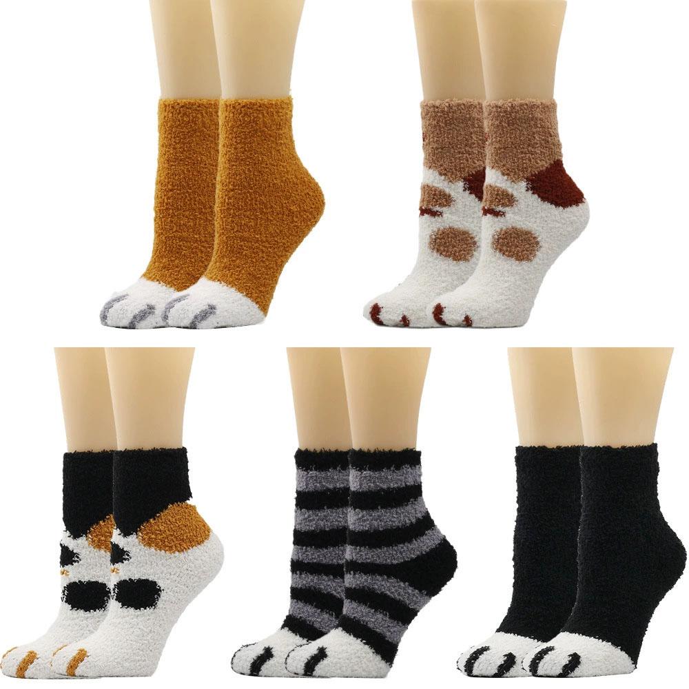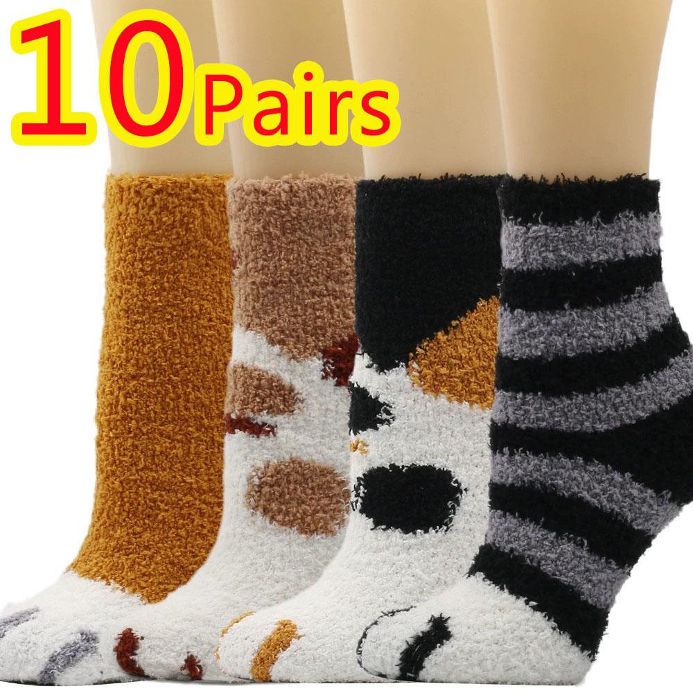 10 пар Плюшевые Утолщенные Супермягкие Милые Носки с Кошачьими Когтями Женские Осенне-Зимние Теплые Пушистые Носки средней длины для Сна