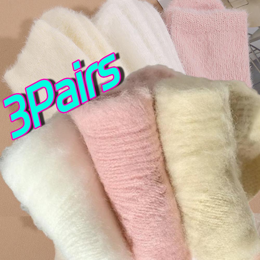 3 пары милых носков из норкового вельвета, кораллового вельвета для женщин, осенне-зимние, теплые, утолщенные, термо, мягкие, эластичные, для сна, плюшевые, пушистые носки