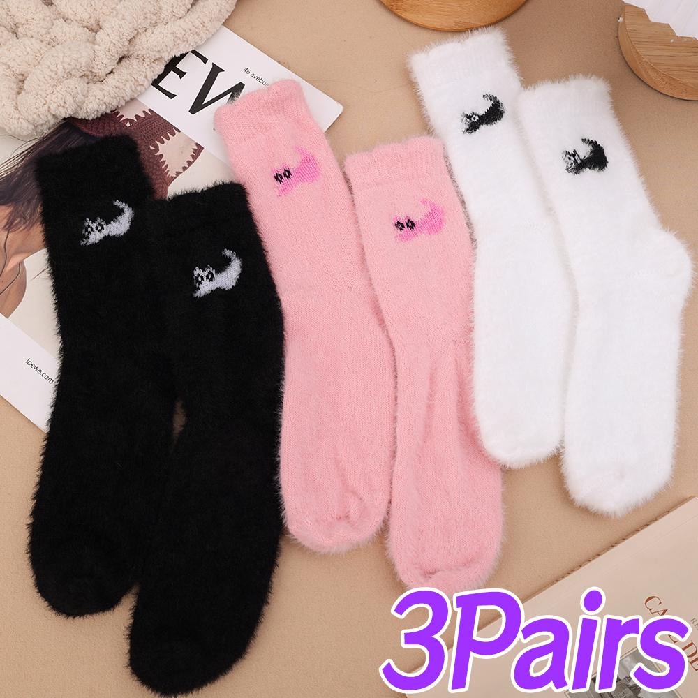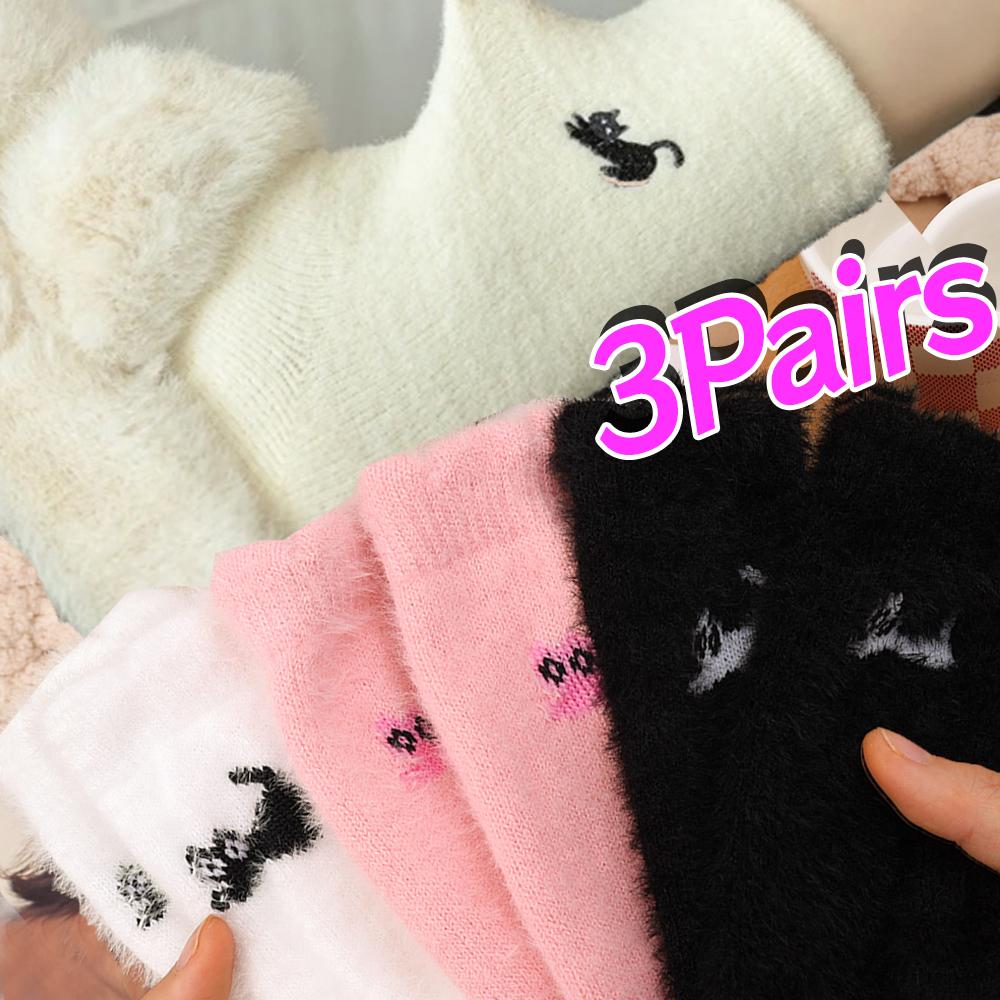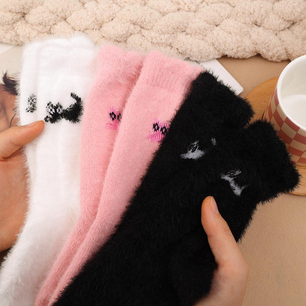 3 пары милых кошачьих носков из норкового бархата на осень-зиму, чулочно-носочные изделия, утолщенные плюшевые теплые, для сна, термоноски для дома, пола, пушистые флисовые носки