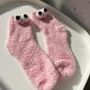 Мультяшные носки с большими глазами для женщин, кавайные милые пушистые плюшевые напольные носки, зимние утолщенные теплые носки из кораллового флиса, женские забавные носки