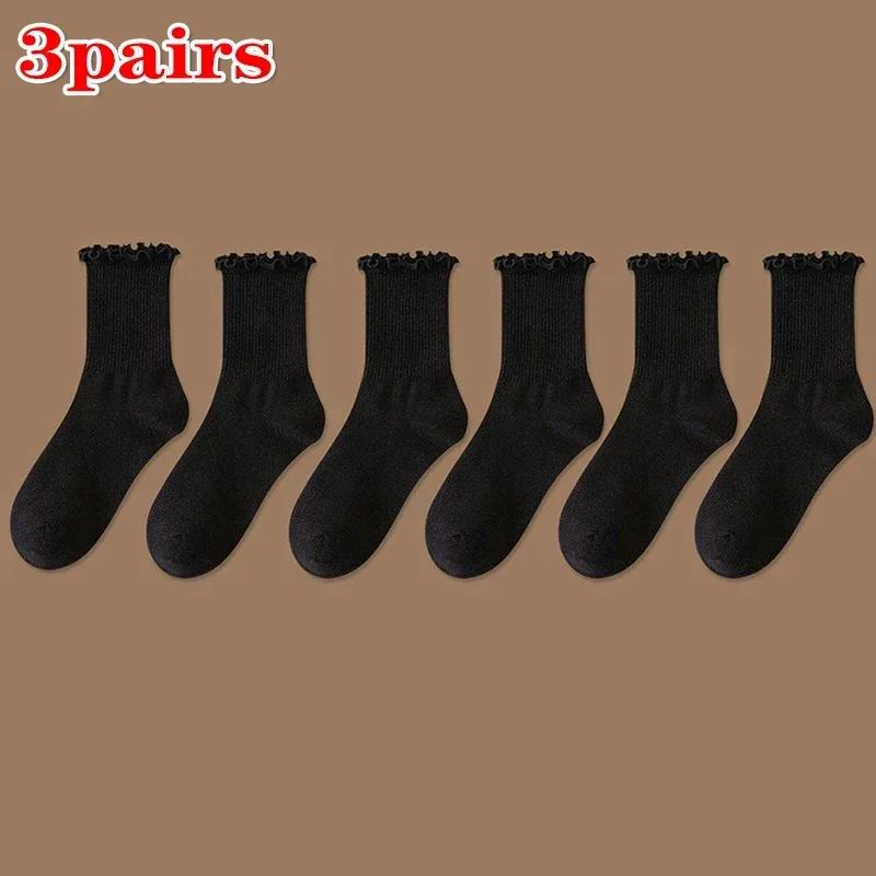 1/2/3 пары Хлопковые носки с оборками до щиколотки Женские Лолита Милые Кавайные Корейские Гольфы Девушка Весна Черные Белые Средней Длины Японские Носки