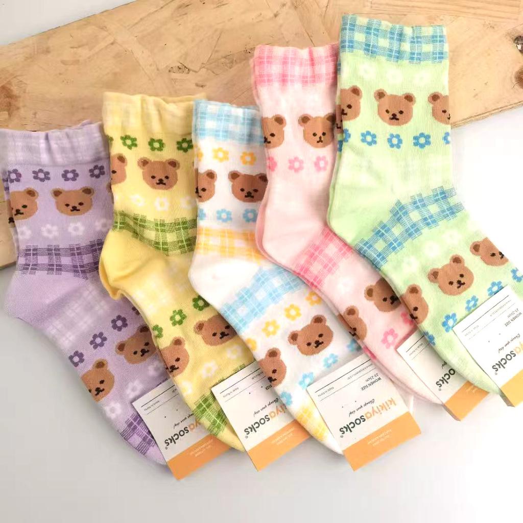 Носки женские Харадзюку Каваи с принтом животных, милые носки с дизайном медведя, абстрактная масляная живопись, корейский стиль, арт, креативные носки — купить товар онлайн с бесплатной доставкой по всему миру!