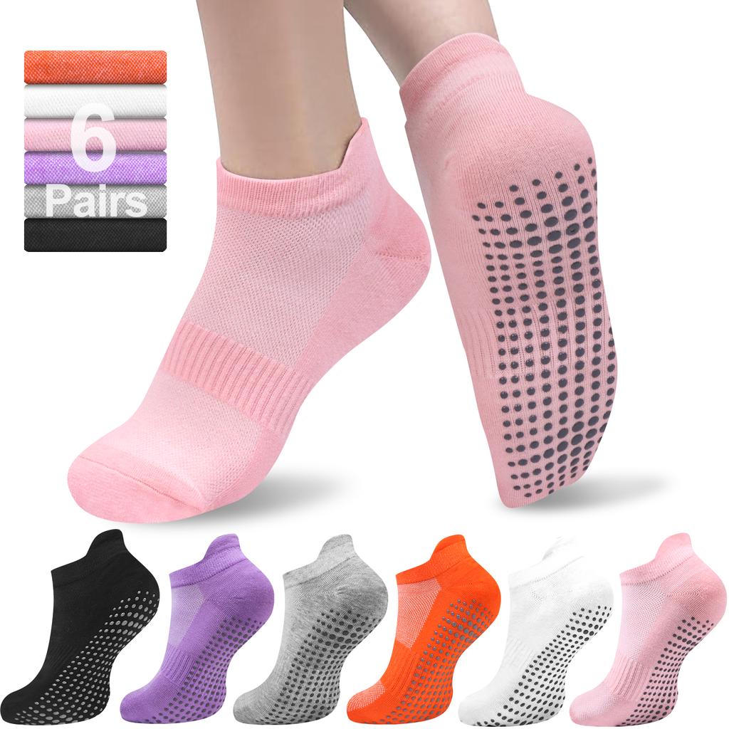 Женские носки для йоги спортивные противоскользящие силиконовые для фитнеса профессиональные тренировочные для бега пилатеса защищающие пятку укороченные носки хлопок