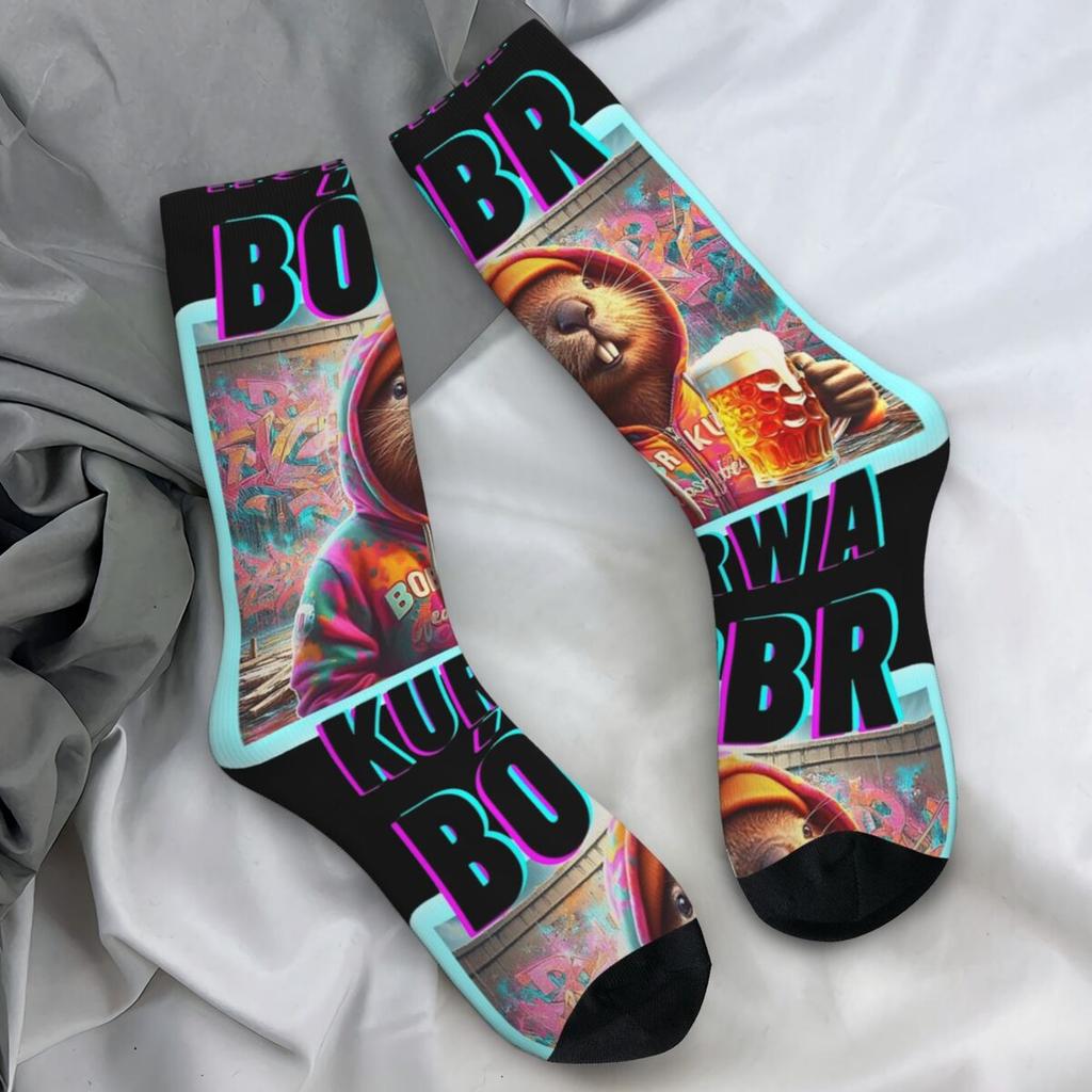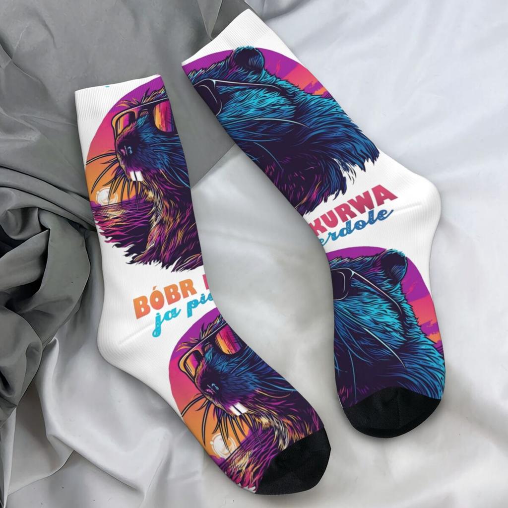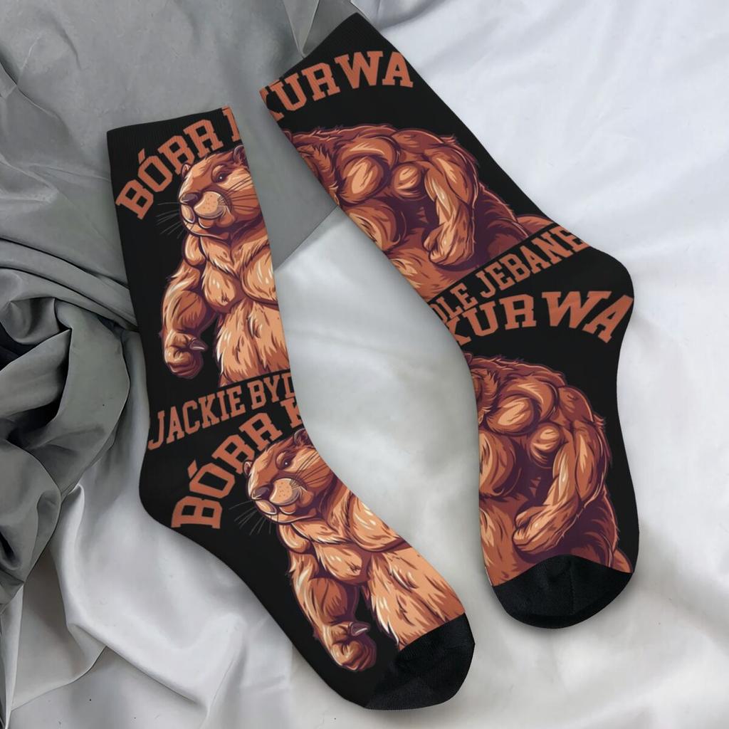 Kawaii Bobr Kurwa Bober Чулки Beaver с рисунком животных Повседневные носки Осенние нескользящие носки Мужские велосипедные мягкие дышащие носки