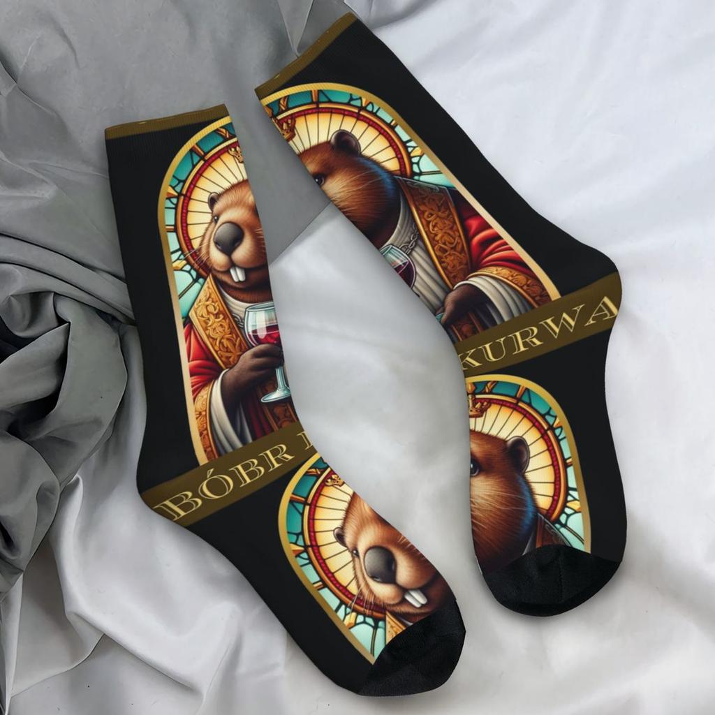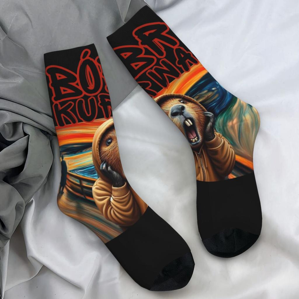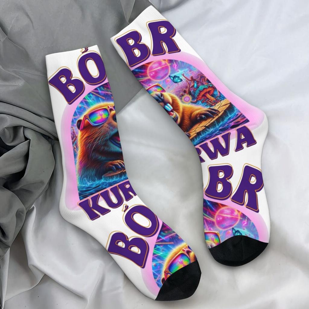Kawaii Bobr Kurwa Bober Чулки Beaver с рисунком животных Повседневные носки Осенние нескользящие носки Мужские велосипедные мягкие дышащие носки