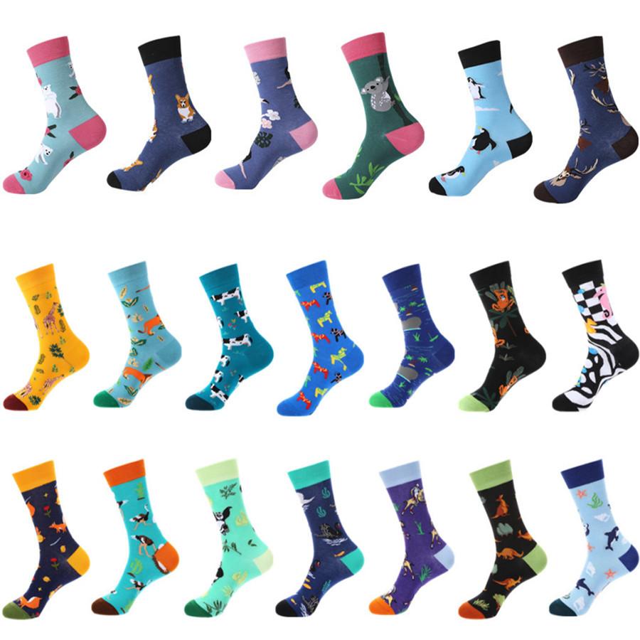 Сотни модных забавных хлопковых унисекс-мужских счастливых носков для улицы, скейтборда, фруктов, еды, панды, тигра, Harajuku, подарков для мальчиков, мужских носков, летних