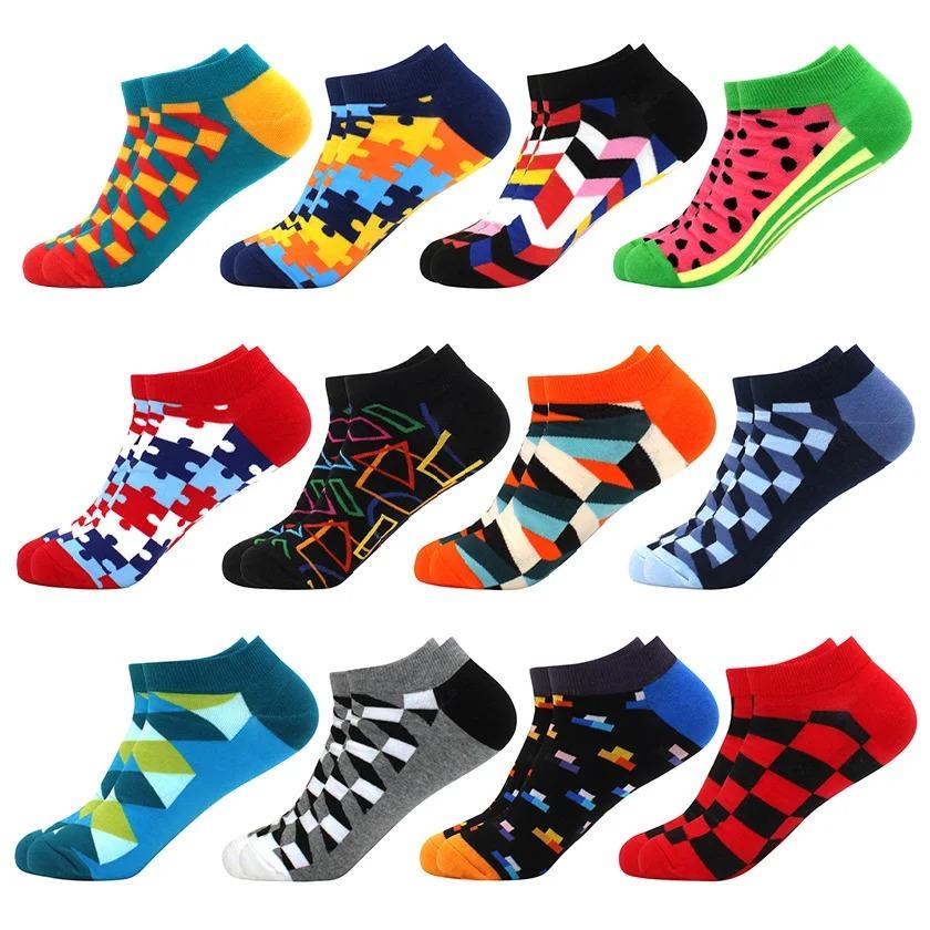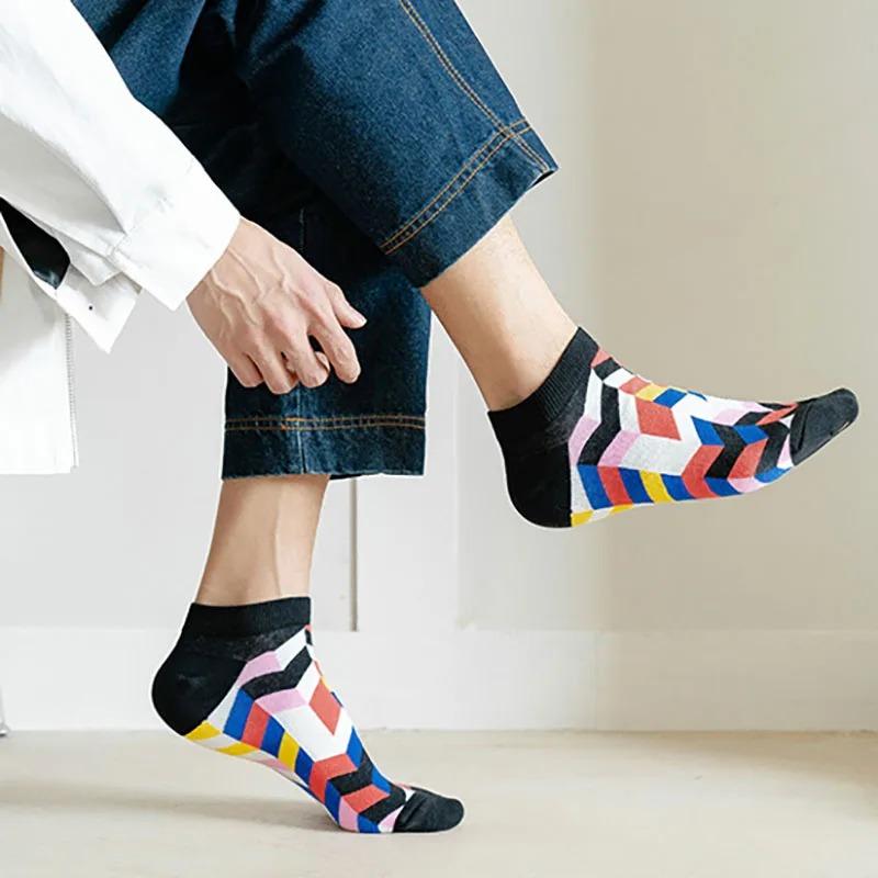 Мужские носки носки-лодочки повседневные хлопковые четкие решетчатые астронавт ромбовидные решетчатые, скейтборд, смешные, носки-лодочки