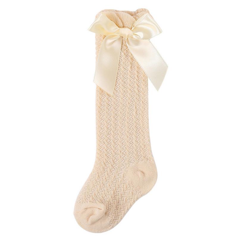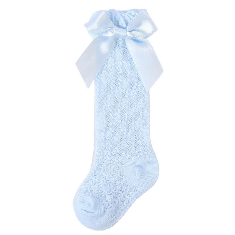 Newborn Baby Girl Knee High Socks Autumn Clothes Long Socks Thin Mesh Stockings with Bow for Infants Baby Items Clothing