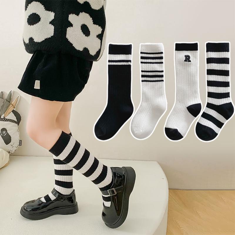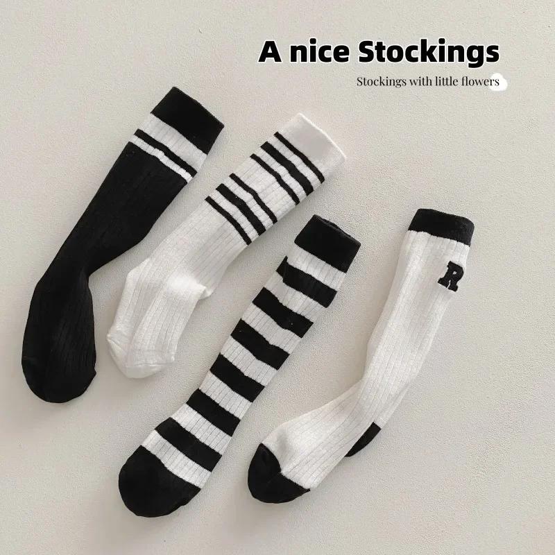 Children School White Black Stripes Sport Socks Korean Knee High Long Stockings for Children Kids Boys Girls Baby Stuff Clothes