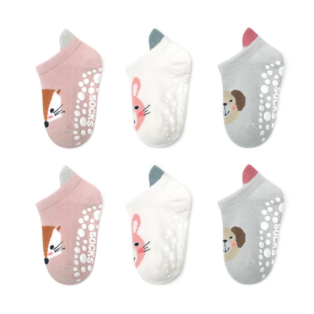 6 пар носков для мальчиков и девочек, детские милые носки с мультяшным животным принтом, противоскользящие носки, носки для малышей, детские носки для пола
