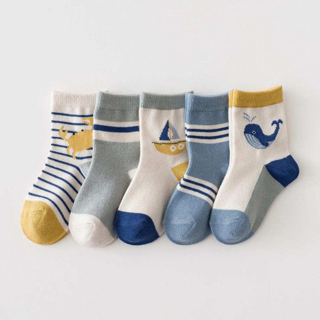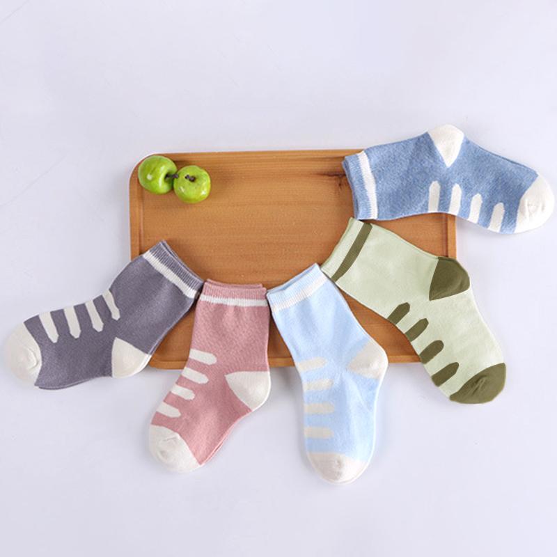 5 пар детских коротких носков Модные полосатые детские носки средней длины Носки для спорта для девочек и мальчиков Детские хлопковые носки Хлопковая дышащая обувь