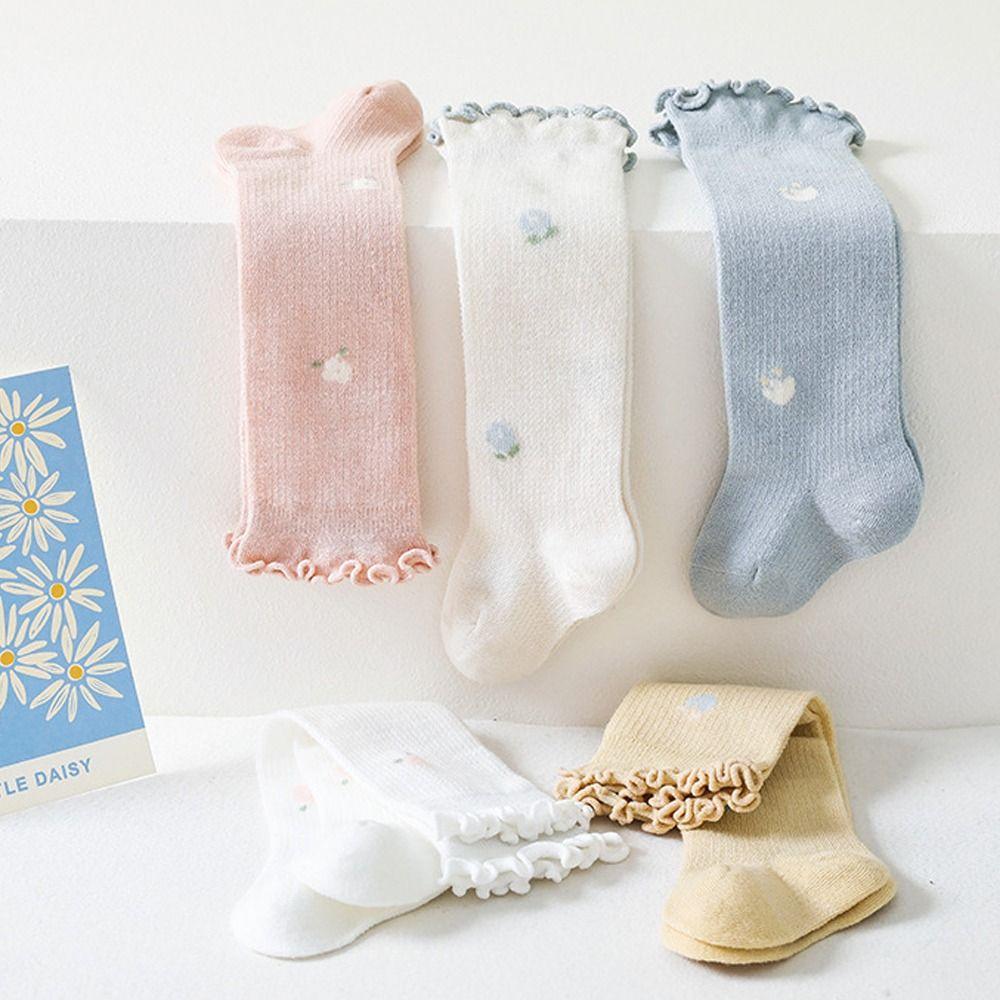 New Summer Ruffle Knee Socks Solid Color Mesh Long Stockings Elastic Breathable Baby Socks Toddler