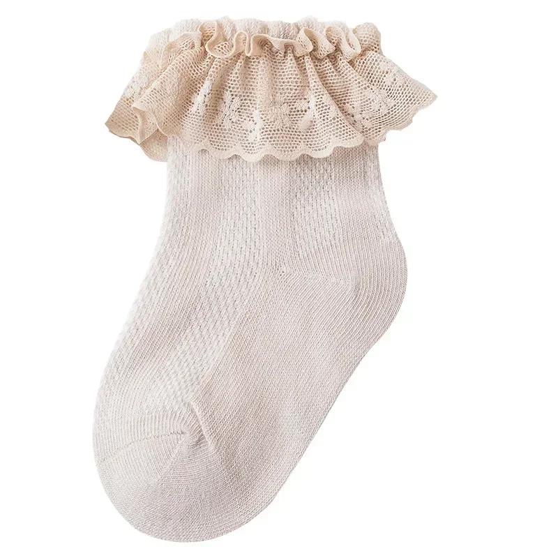 Корейские детские носки с рюшами, однотонные хлопковые дышащие сетчатые носки для маленьких девочек, детские носки для новорожденных от 0 до 8 лет